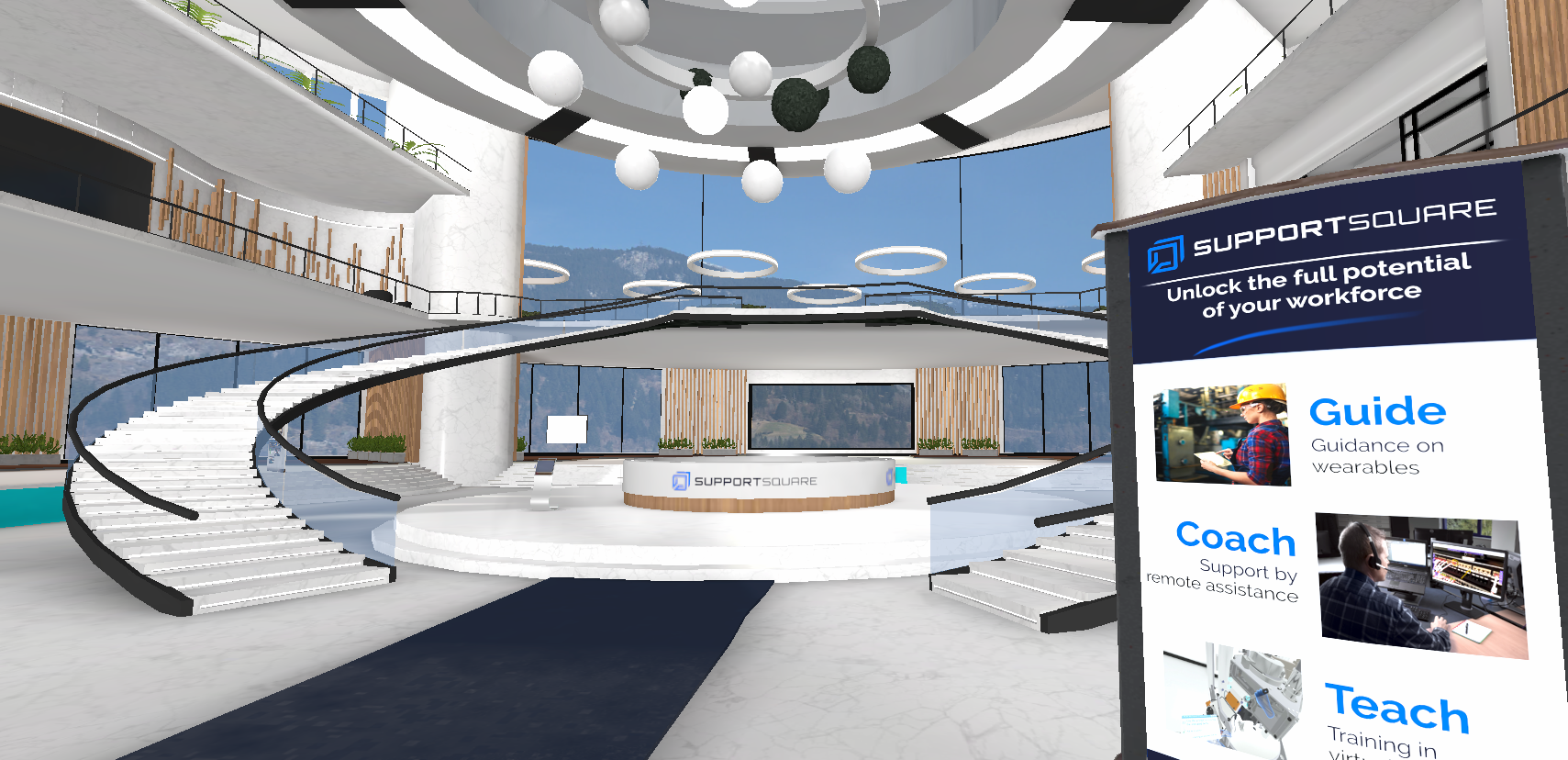 A customizable multiplayer virtual environment designed to showcase company branding, identity, and specific use cases.